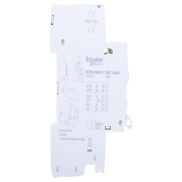 Contact auxiliaire Schneider Electric Acti 9 iSD 1 contact 1RT Montage rail DIN, Nombre de contacts 1, Configuration état normal 1RT, Montage Montage rail DIN, Gamme Acti 9, Série iSD