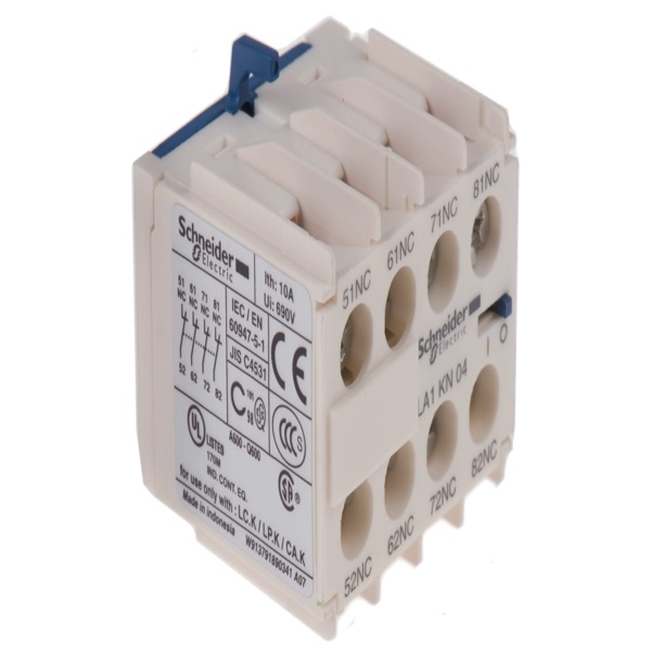 Contact auxiliaire Schneider Electric LA1K 4 contacts 4 NF à vis, Nombre de contacts 4, Configuration état normal 4 NF, Montage Montage avant, Série LA1K, Courant de contact 10 A