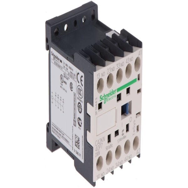 Relais de contrôle Schneider Electric CA2KN, 4 N/O, 10 A, Courant de contact 10 A, Gamme TeSys K, Série CA2KN, Montage Montage rail DIN, Configuration état normal 4 N/O