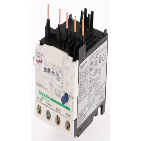 Relais de surcharge thermique Schneider Electric LR2K, 1 NO + 1 NF, 160 mA, 250 V CC, 690 V AC, Gamme de moteur FLC 0,11 – 0,16 A, Courant de contact 160 mA, Tension de contrôle 250 V c.c., 690 V AC, Gamme TeSys, Configuration des pôles 3P